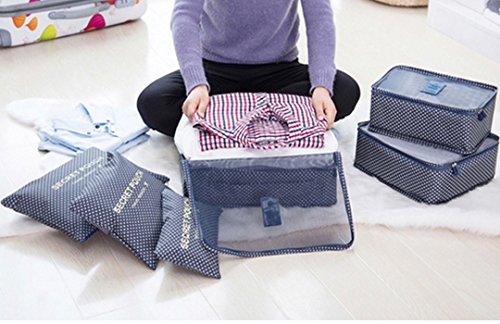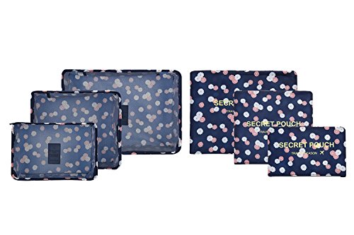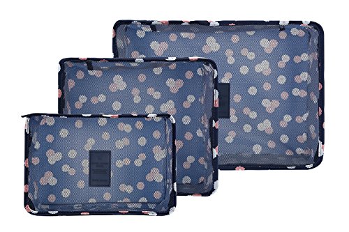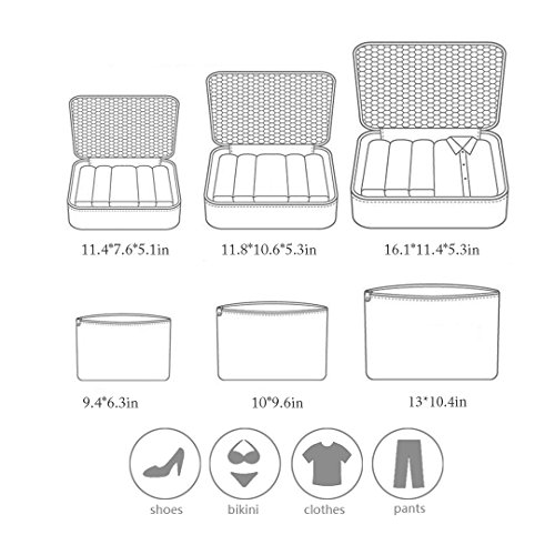 -. Feature : HIGH QUALITY - Made of premium quality polyester and soft nylon mesh,easy two-way zippers and stitching, definitely most well-made and durable travel bag you ever owned / 6 PACKING ORGANISERS: Our item including 3 packing cubes and 3 flat pouches with Small, Medium and Large sizes / SAVE YOUR SPACE IN YOUR LAGE/BAG - Large interior volume holds all your travel clothing, shoes, makeup, shaving accessories and more. Multiple mesh bags to organize and separate your item, smooth material ensures that your clothes don't get creased / FUNCTION: Easy to washable, prevent bacterial growth, smell reduction, reasonably arrange lage space to make your life more convenience. Not just for clothes:three packing cubes organizers have handles for carry.Also make the perfect travel tote for makeup and beauty products, cosmetic bottles, toiletry kits, pantyhose, delicates, small purses, and even camera accessories / ORDER WITH CONFIDENCE -100% Save your time, space and headaches,keep and make sure all your personal care belongings in a convenient place. Lightweight,water-resistant, portable, foldable, easy to storage. Suitable for family/couple or long-term travel