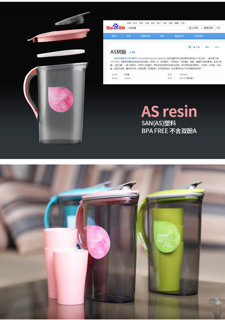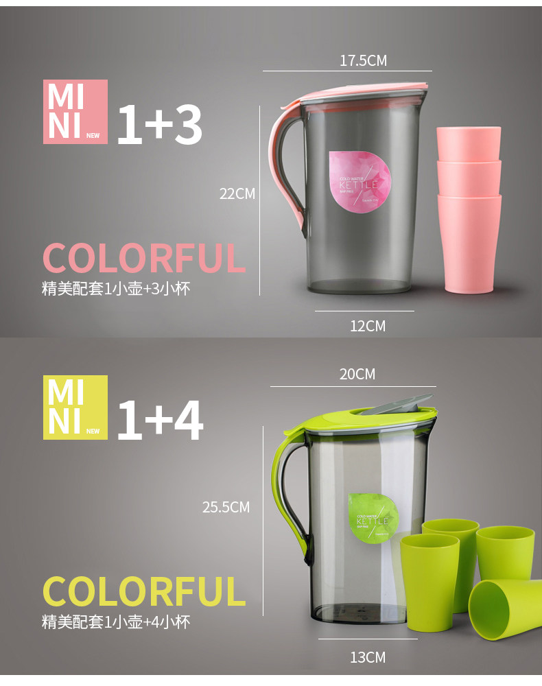 贝合耐高温冷水壶套装大容量塑料凉水壶豆浆果汁花茶壶水杯水具