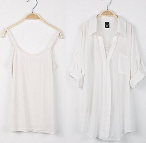 -. Title : (ニブンノイチスタイル) 1/2style おしゃれ キャミソール ロールアップ シフォン ブラウス 2点 セット アンサンブル レディース
