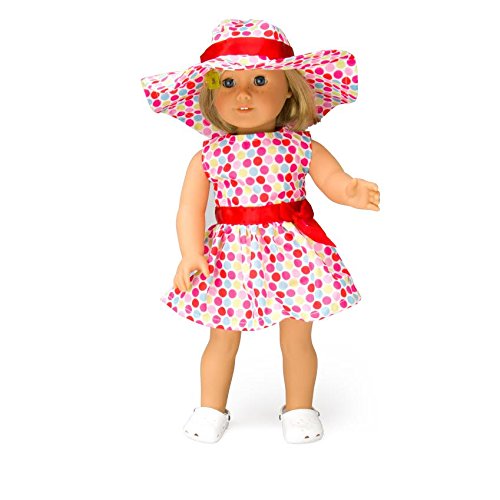 - Doll Clothes for American Girl Dolls: 3 Piece Polka Dot Sun Dress Outfit - "Dress Along Dolly" (Includes Dress, Hat, and Sandals)