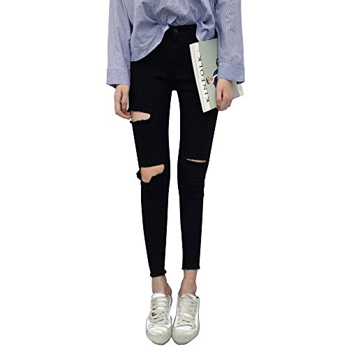 -. Title : (ノーブランド品) ダメージジーンズ レディース スキニー 黒 スキニーパンツ ブラック ダメージ スキニージーンズ デニム ブラックデニム