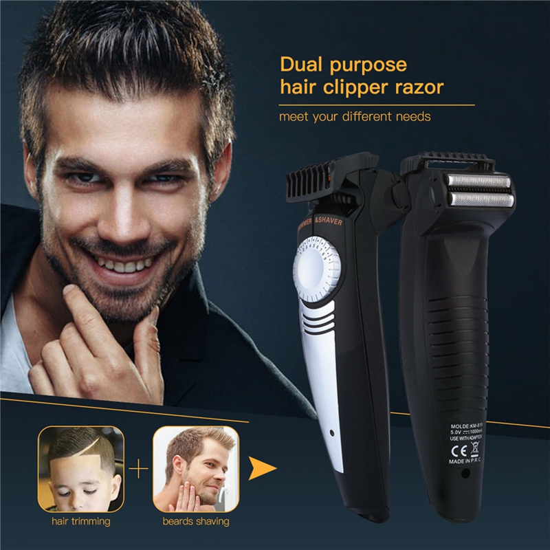 - Push type power switch, push the switch up, the hair trimming mode will turn on, push the switch down, the shaving mode will turn on, push the switch to the centre position, the power will turn off.