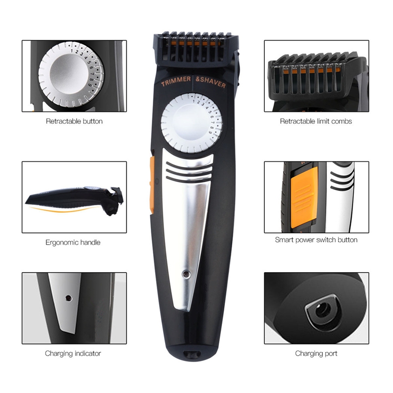 - Retractable limit comb, the limit comb can be retractable up and down, the rotating button to left, limit comb will rise, the rotating button to right, limit comb will go down, free control the cutting length.