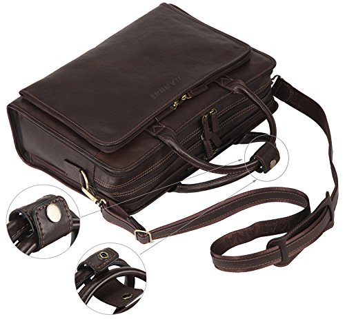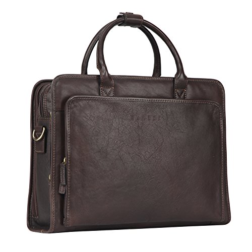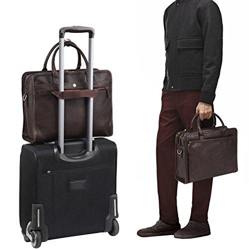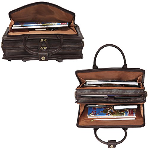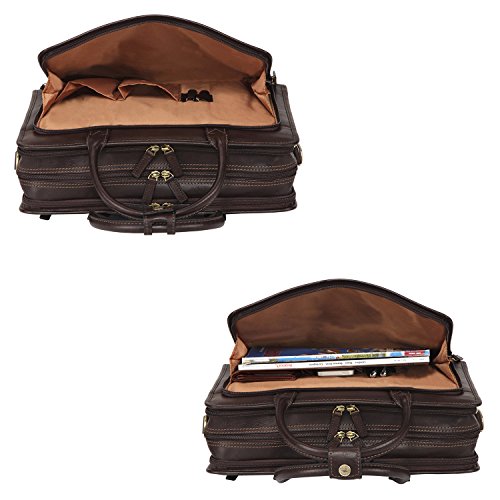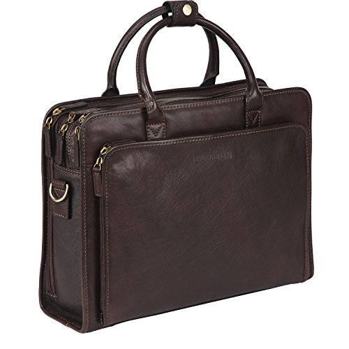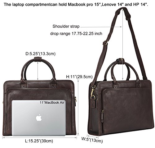 Binding : Electronics Product Description OVERVIEW: This business briefcase made of Italian vegetable tanned leather, matched with anti brass hardware. MAIN FEATURE Multiple gussets Top-zip closure Top handle with 5.25 inch drop, snap tag closure. Additional detachable and adjustable shoulder strap. ---with 21.5 inch longest drop Details Front 1 x 2-ways zippered gusset ----interior with 2 x pen slots 2 slip pockets 1st main gusset ----interior with 3 x slip pockets 2nd main gusset ---interior with 1 x padded sleeve, fits up to 15 MacBook Pro 3rd main gusset ----interior with 2 x slip pockets 1 zippered pocket Back 1 x snap gusset 1 x zippered pocket Dimension: 15.25 L * 5 D * 11 H inches 39 L * 13 D * 29.5 H cm Net Weight 1.65 kg Color: Dark Brown 0