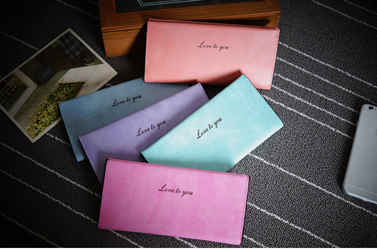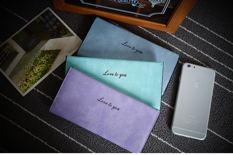 B:Spring and summer new Korean female long section of thin wallet card package soft surface retro matte small wallet tide students