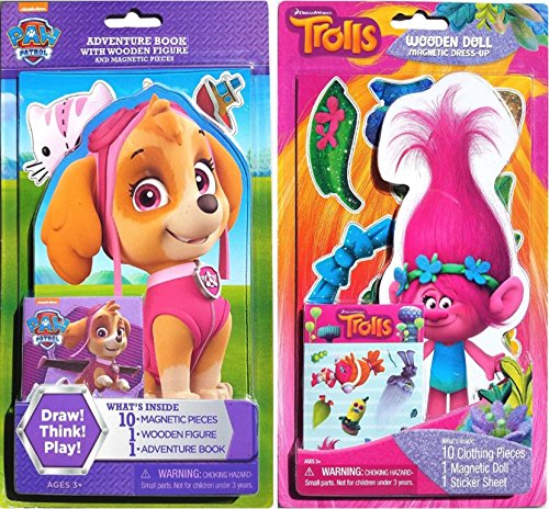 -. Title : Kids Indoor Fun Play Trolls Poppy & Paw Patrol Skye Wooden Magnetic Doll with Dress-up Clothing Pieces and Sticker Sheet