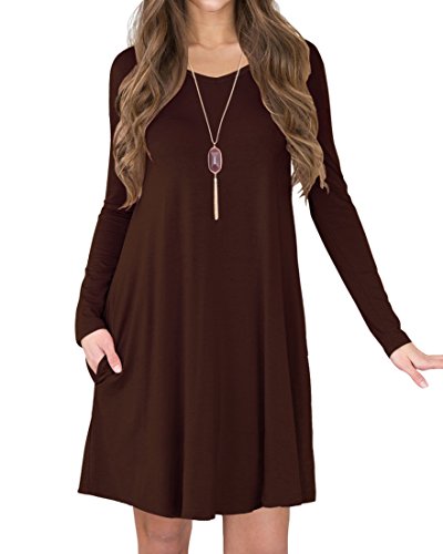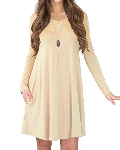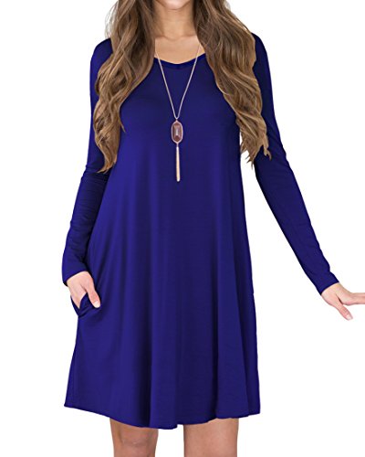*Women's Long Sleeve Pocket Casual Loose T-Shirt Dress.