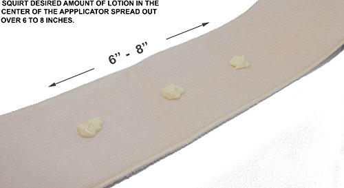 Directions for use: 1. Place lotion applicator on flat surface. 2. Spread the desired amount of lotion over 6 to 8 inches in the center of the applicator. 3. Grab a handle with one hand then position the applicator on your back so you can grip with other hand. 4. Spread the lotion, like you're using a towel, until evenly applied over entire back. 5. To clean, use washer and dryer. 0 |