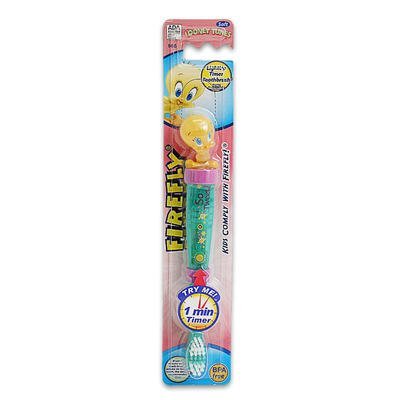 -. Feature : Firefly Tweety Toothbrush / FireFly light up technology teaches kids to brush their teeth for a minute / Comfortable handle grip & soft DuPont bristles