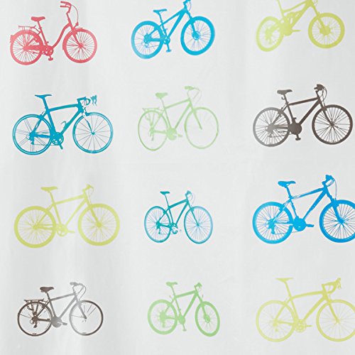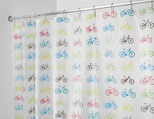 -. Brand : MetroDecor -. Color : Multi Color -. EAN : 0841247129822 -. Feature : Eco-Friendly; PVC-Free; Odorless; 100% Waterproof; No liner needed. / 12 rustproof metal grommets / Easy care. Wipes clean with a damp cloth. / PVC-free, non-toxic PEVA material -- Does not let off a chemical smell / Measures 72" x 72" -. Label : MetroDecor -. Manufacturer : MetroDecor -. Model : 2982MDSC -. MPN : 2982MDSC -. PartNumber : 2982MDSC -. ProductGroup : Home -. ProductTypeName : HOME_BED_AND_BATH -. Publisher : MetroDecor -. Studio : MetroDecor -. Title : mDesign Bicycles PVC-Free PEVA Shower Curtain, 72" x 72", Multi Color -. UPC : 841247129822