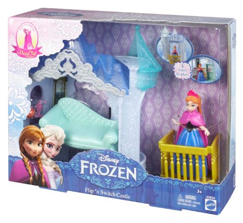 -. Binding : Toy -. Brand : Mattel -. Color : blue -. Department : baby-girls -. EAN : 0783329694418 -. Feature : Join Anna in her delightful castle with three ways to play! / Two-in-one furniture allows transformation: flip Anna's chaise on its side, and it becomes a vanity! / Turn the play set around to reveal a royal balcony from which Anna can overlook the kingdom of Arendelle / Castle comes with Anna small doll dressed in her signature fashion in easy-to-dress MagiClip form / Themed accessories expand fairy-tale fun -. IsAdultProduct : 0 -. ItemPartNumber : BDK34 -. Label : Mattel -. LegalDisclaimer : No Returns -. Manufacturer : Mattel -. Model : BDK34 -. MPN : BDK34 -. NumberOfItems : 1 -. PackageQuantity : 1 -. PartNumber : BDK34 -. ProductGroup : Toy -. ProductTypeName : TOYS_AND_GAMES -. Publisher : Mattel -. ReleaseDate : 2013-11-01 -. Studio : Mattel -. Title : Disney Frozen MagiClip Flip 'N Switch Castle and Anna Doll -. UPC : 885558421855 -. Warranty : 1 year warranty against manufacturer defects