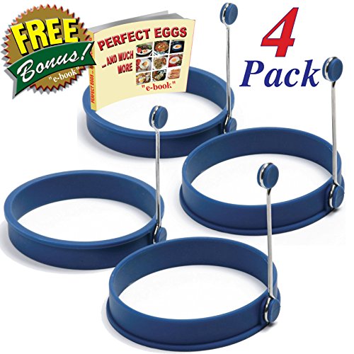 Feel a professional chef with this handy gadget. Get the perfect fried egg! It can even be used for the perfect small pancake, fritters, Benedict eggs, Omelettes, Breakfast sandwiches, Egg Muffins, Burger patties, etc.! Explore your personal creativity easily. Rebatible handle for cooking with lid and easy storage Set of 4 rings is perfect for your family. Reusable, practical and easy to clean. It does not stick so it can be used repeatedly without washing in between. Decreases the amount of oil needed for preparations. Does not scratch the pan Silicone according to FDA requirements, High temperature resistant, easy release non-stick surface Withstands temperatures of -20°F to 450°F (-30°C to 230-°C). Dishwasher safe.