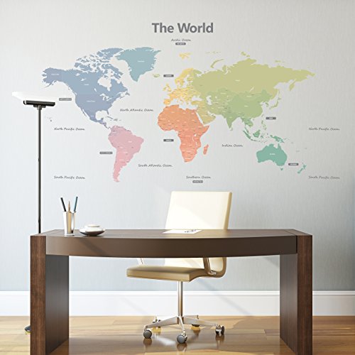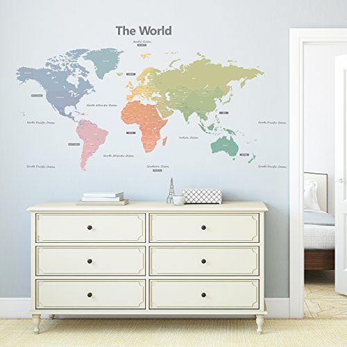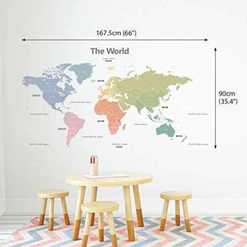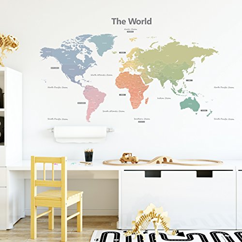 -. Title : Decowall DLT-1809 Modern Pastel Tones World Map Kids Wall Stickers Wall Decals Peel and Stick Removable Wall Stickers for Kids Nursery Bedroom Living Room (Xlarge)