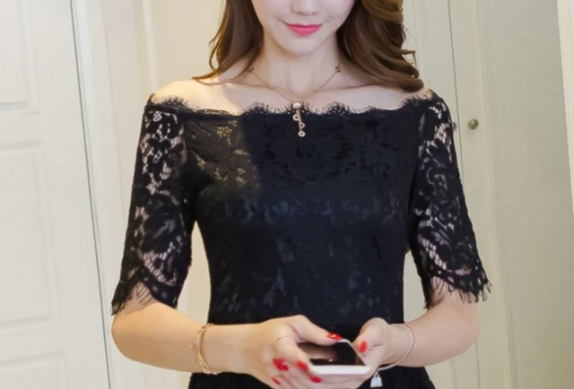 オフショルダーと花柄レースがセクシーで、上品さも感じます☆