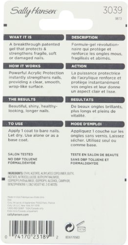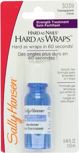 Sally Hansen hard as nails hard as wraps powerful acrylic gel is a breakthrough patented gel that protects and strengthens fragile, soft or damaged nails. Powerful acrylic protection instantly seals and hardens nails in 1 easy step. Formula provides an instant, long-lasting, wrap-like surface for fragile, soft, torn, chipped or cracked nails. Provides a clear, smooth, shiny finish. Only one step-no mixing, no mess.Feature