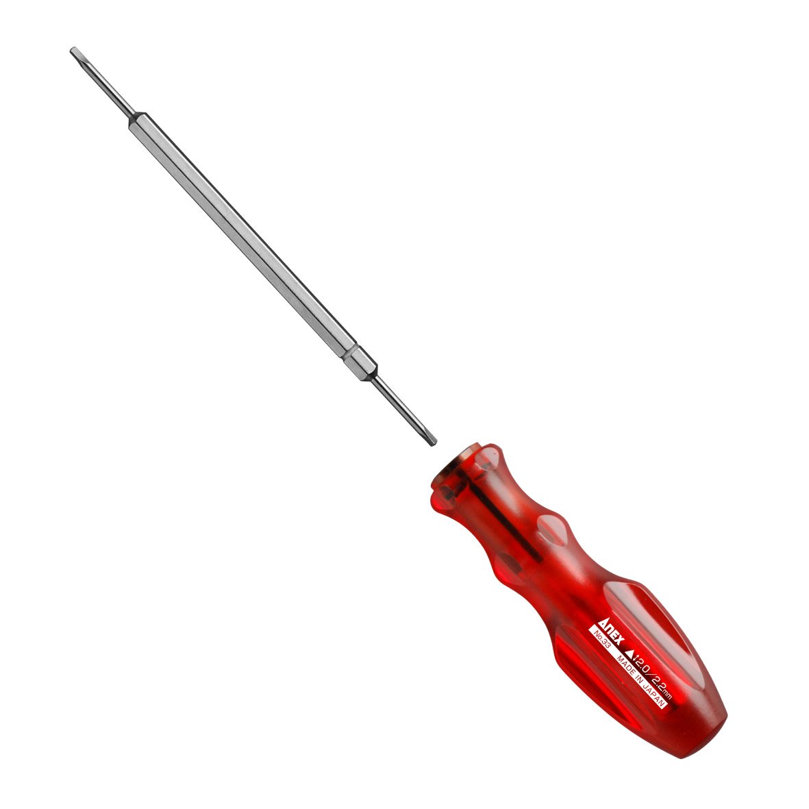 Cutting edge 2.2 mm × shaft diameter 2.7 mm) ● Hexagonal shaft: 6.35 mm ● Grip size: length 105 × width 32 mm ● Bit total length: 150 mm ● 2 sizes in one, bit replacement type ● Attention: Excessive force