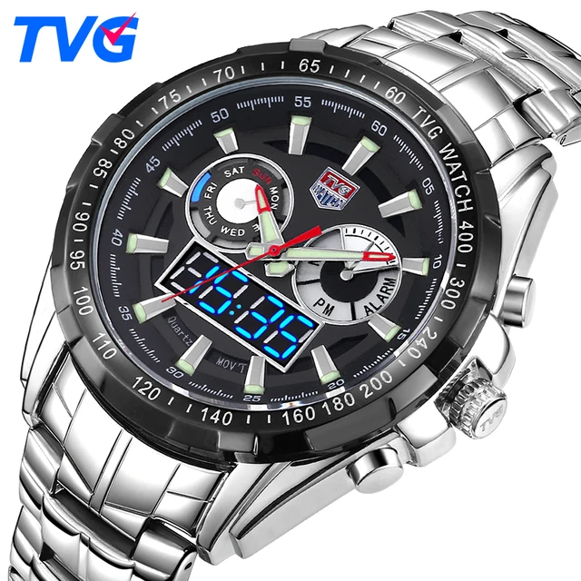 설명: 100% 새로운 브랜드, 높은 품질. 정확한 타이밍 정밀 쿼츠 시계 운동. -30 메터 생활 방수 (적용되지 않습니다 수영복 수영). -우리의 모든 제품은 실제 사진, 인해 촬영 환경, 조명 및 디스플레이 다른, 만들 사진 약간의 색상 차이가 실제 효과 것입니다 영수증 우선한다 특징: -TVG (579) 손목 2 버전; -일본 원래 석영 운동 및 LCD 자리 운동; -시간,, 둘째, 날짜,,, 알람 시계, 12/24 시간 백라이트; 높은 내마모성 유리; 환경 IP 진공 전기 도금 케이스; 높은 품질 스테인레스 스틸 손목; -스테인레스 스틸 버클 및 다시 케이스 3D " TVG " 로고 2 년 긴 배터리 수명 -산책 error±45S/M -12 월 원래 공장 품질 보증 -30 메터 물 저항하는 (마십시오 프레스 어떤 키 수중) 잡습니다 포함: -1 x TVG 시계 -1 x 선물 상자 -1 x 사용자의 설명서 (영어)