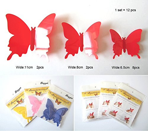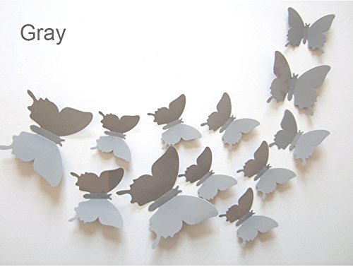 Blogger 3D Butterfly Wall Sticker Three-dimensional 12 Pcs Wall Decal Home Decoration Removable Sticker Mural DIY Decor as Mirror(12pcs\Gray)
