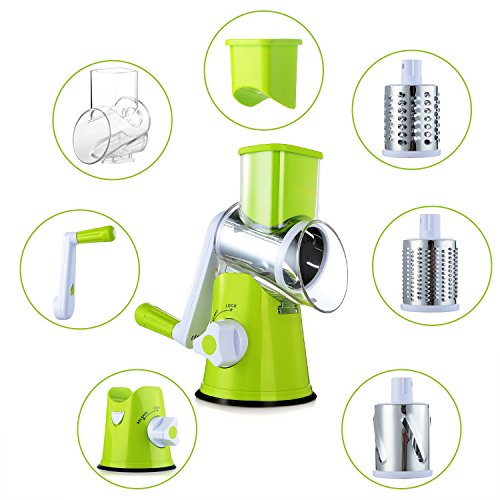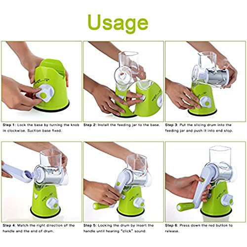More Safe & Heavy Duty: Reasonable drum-type rotating vegetable shredder has powerful suction feet for stability on your table.This makes it efficient and easy to operate!