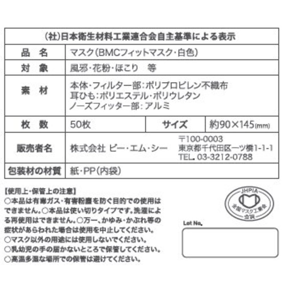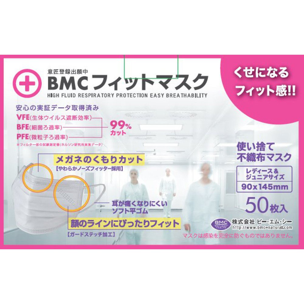 BMC fit mask (disposable surgical mask) Women & Junior size white 50 pieces