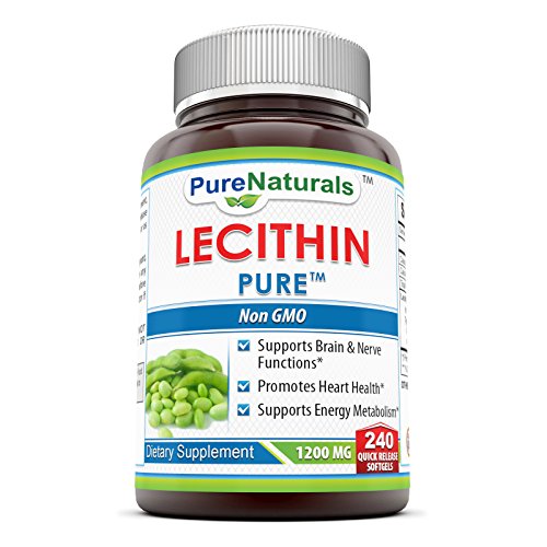 -. Binding : Health and Beauty -. Brand : Pure Naturals -. EAN : 0816511020471 -. Feature : Lecithin can be found in many foods, including soybeans. It is an essential fat that every cell in the body depends on for structure and functioning. / Lecithin soy contains choline that is needed to produce the neurotransmitter acetylcholine, which supports healthy memory, brain function and nerve function. Lecithin is a key component in cell membranes which may help to regulate healthy cellular functions. In addition it also promotes cardiovascular health. / Our lecithin high potency supplement spares you from having to take multiple softgels per day! Just one lecithin 1200mg softgel per day is all it takes. / Pure Naturals Lecithin dietary supplement is GMO Free / Our Lecithin dietary supplement is made in the USA at a GMP certified facility, so you can be certain you're getting only the finest supplement when you choose Pure Naturals -. IsAdultProduct : 0 -. Label : Pure Naturals -. Manufacturer : Pure Naturals -. MPN : 816511020556 -. PackageQuantity : 1 -. PartNumber : 816511020556 -. ProductGroup : Health and Beauty -. ProductTypeName : HEALTH_PERSONAL_CARE -. Publisher : Pure Naturals -. Studio : Pure Naturals -. Title : Pure Naturals Lecithin 1200mg 240 Quick Release Softgels -. UPC : 816511020471