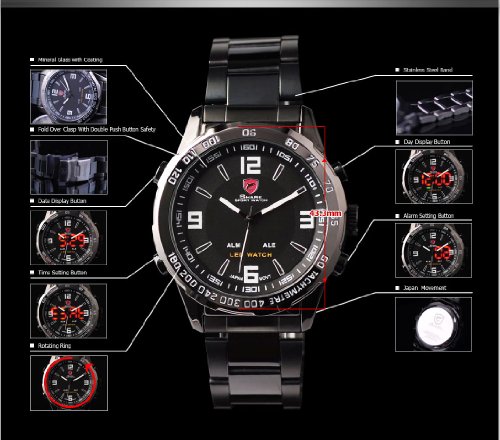 SHARK LUXURY DATE DAY ALARM ANALOG LED DIGITAL MENS SPORT WRIST WATCH SH010