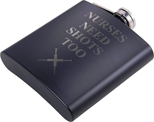 -. Feature : This nurse flask makes a classic gift for years to come. / A GREAT GIFT FOR ANY OCCASION: Birthdays, Graduation, Christmas / Made of Stainless steel with a Black Matte coating, laser marking removed the black and shows the stainless steel underneath / Laser marked on one side, includes Gift Box and Funnel! / This nurse drinking flask holds 6oz of liquid.