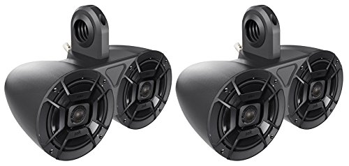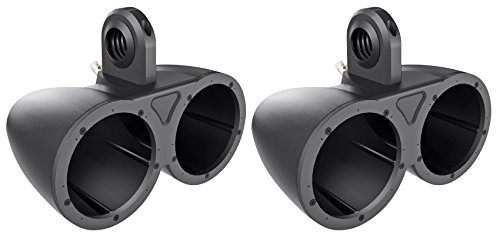 -. Feature : (2) Polk Audio DB652 6.5" 300 Watt Car Audio Marine/ATV/Motorcycle/Boat Speakers. High performance audio upgrade that delivers signature quality sound that goes beyond OEM factory systems / Marine certified with IP65 rating (water- and dirt-resistant) and tested for salt-fog, UV and humidity. Polypropylene and UV tolerant cone with waterproof inner and outer surrounds. Simple drop-in installation for any vehicle including cars, boats, ATVs-you name it / Zero tweeter protrusion and reduced mounting depth for a precise fit. Dynamic Balance technology offers a rich, clean, full-range sound. ¾", 20mm Tweeter ensures clear, balanced mids and highs. 100 Watts at Continuous Power; 300 Watts at Peak Power / Kicker KMTED Dual 6.5'' Boat Speaker Enclosure . Package includes (2) enclosures that hold a total of (4) speakers. Tough ABS, weather-proof empty enclosures with slotted mounting holes for different bolt patterns. Enclosures feature a nine-degree axis rotation in either direction for aiming maximum sound quality / Aluminum tower-pipe clamps (2-5/8'') with three adapter sizes (2-1/4'', 2-3/8'', 2-1/2''). Durable, stainless-steel push-type connectors. Includes mounting hardware and polyfill. KMTAP adapter pack (sold separately) fits more pipe diameters. Accepts all KICKER 6-1/2-inch component speakers, coaxial and horns
