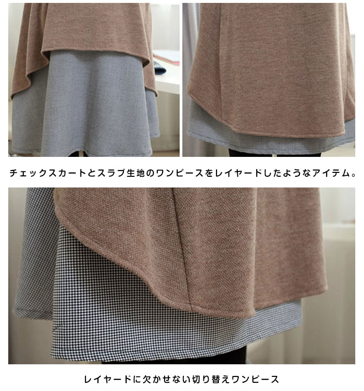 | カジュアルとフェミニンが融合し、単調に見えやすいワンピもチェックスカートをプラスするだけで華やかさUP!ラウンドネックで首もとにも余裕をあたえ、アクセサリーとも相性よく簡単にお出かけコーデが完成します!!長すぎず短すぎない膝丈だから、レギンスやトレンカとの相性も◎ | |