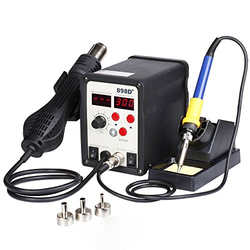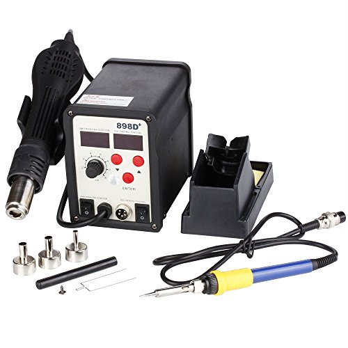 Flexzion Hot Air Soldering Station SMD Gun 2in1 Iron Solder Digital Rework Set Welder Repaire Tool with Dual LCD 3 Nozzles Power Switches Unit Electric 110V 898D
