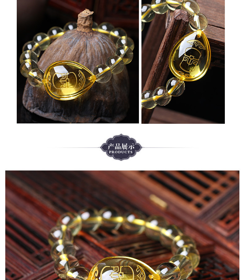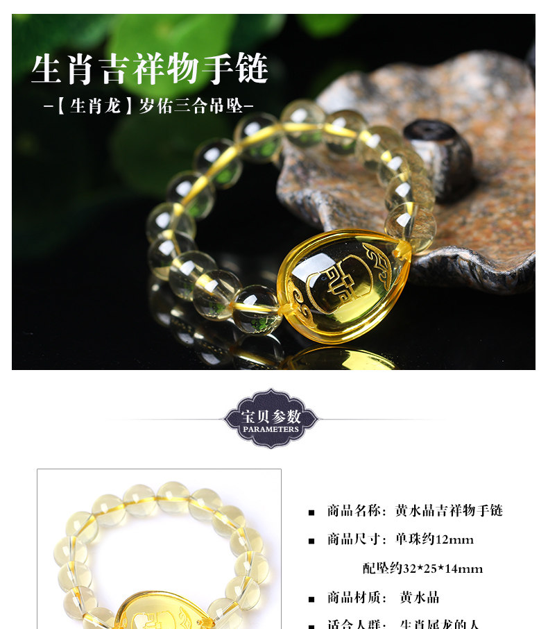 开光黄水晶[生肖龙]辰司酉庆鸡年七星堂开运吉祥物手链
