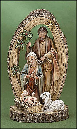 Woodgrain Holy Family Nativity with Sheep on Base