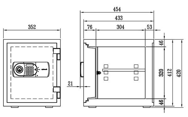 シンプルでスタイリッシュなデザインのテンキー式耐火金庫です。小型コンパクトサイズでも開口部が広くA4紙が楽々収納。 |