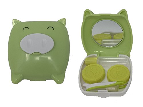 - Light Lime Green Compact Mini Travel Contact Lens Case is super cute and shaped like a piggy face