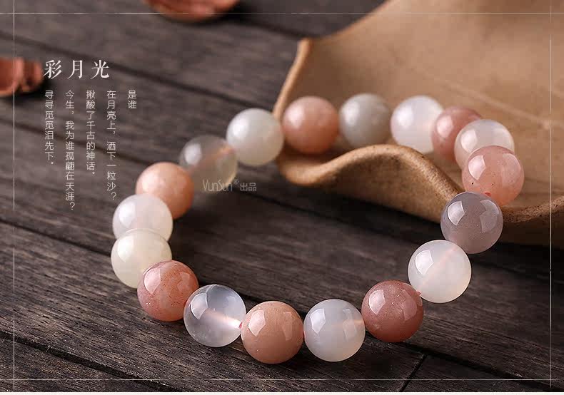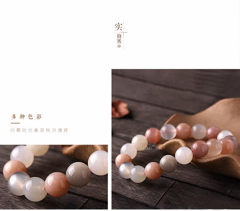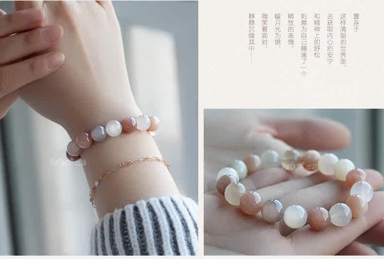 天然月光石手链女款 单圈彩色手串女简约小清新文艺饰品