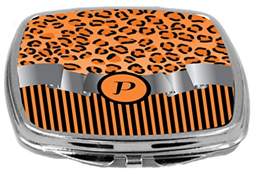 Rikki Knight Compact Mirror, Letter p Initial Orange Leopard Print and Stripes
