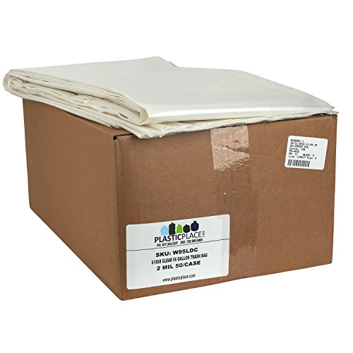 Plasticplace 95 Gallon Trash Bags, 2.0 Mil, 61"W x 68"H, Clear, 50/Case