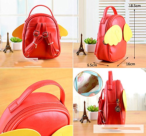 * We use the artifical(PU) for this bag, soft, comfortable, safe, odorless and high-end. When you touch the bag, The lining is durable and smooth, not easy to wear or tear. Put it in a dry, cool and ventilated place, and avoid exposure to chemicals, spikes and hot place, expect clean it with dry soft cloth when it got stains * Beautiful streamlined stitching outside and fully lined interior with silky fabric, high quality, candy color and special angel wings design, presented a fashion and perfect looking for girls pricess * Best gifts for kid's school season, and it is also a awesome gift for family and friends. Ideal for going to the zoo, playing at the park, going to kindergarten, traveling and any other outdoor activities and you can match this cut bag with any set of clothes * Dimensions: 6.31"H*2.56"W*7.09"L. The main compartment is very big, can hold up your all daily small necessities, perfect for school /travelling/ outing