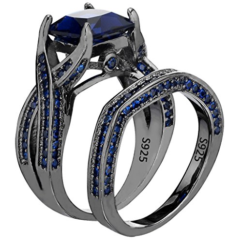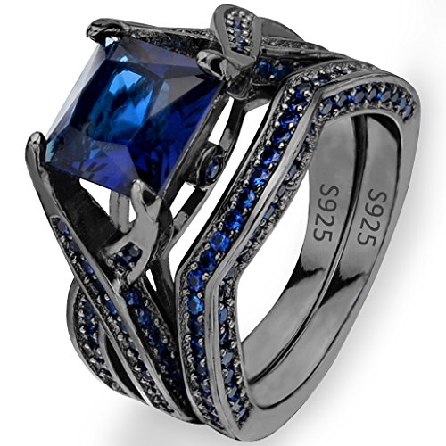 -. Binding : Jewelry -. Brand : EVER FAITH -. Department : womens -. Feature : [!]EVER FAITH is a US registered trademark and Ever Faith Jewelry(former name: Kiss Bling) is its only owner. We will pursue legal action against trademark infringement in case of UNAUTHORIZED sale or resale. / We have SGS Professional Certification for our Sterling Silver Items. Customers could go to a professional agency for testing them. 925 Sterling Silver is also suitable for sensitive skin to wear. / The big cubic zirconias are pronged to the jewelry item to secure from loosing. A prong setting is one component of what is known in the jewelry business as a head, a claw-shaped type of binding (typically 3, 4, or 6 individual prongs per head) that is welded or soldered to a jewelry item in order to mount (or set) a stone to the jewelry item. / Width: 0.5 Inches. / Wrapping: Come With a Silver Polishing Cloth and a Gift Box or Favor Bag (Depend on Product Size). Sterling silver may require cleaning from time to time.Silver Polishing cloths are an excellent choice for cleaning your sterling silver jewelry. They will remove the tarnish and dullness, keeping your sterling gift like new. If you need assistance please contact us. -. Label : EVER FAITH -. Manufacturer : EVER FAITH -. ProductGroup : Jewelry -. ProductTypeName : FASHIONRING -. Publisher : EVER FAITH -. Studio : EVER FAITH -. Title : EVER FAITH® Black Sterling Silver 925 Princess Cut CZ Solitaire Cocktail Ring Set Sapphire Color