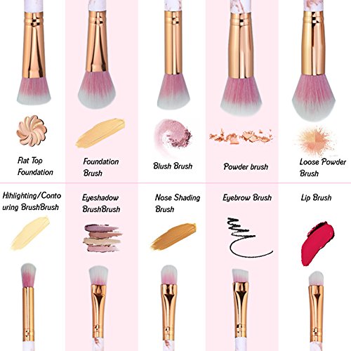 - ✿ Multi-FUNCTION: 10pcs marble makeup brush set meets all your need of cosmetic application like powders, creams, and liquids to mineral makeup, contouring, shading, highlighter, and shimmer.