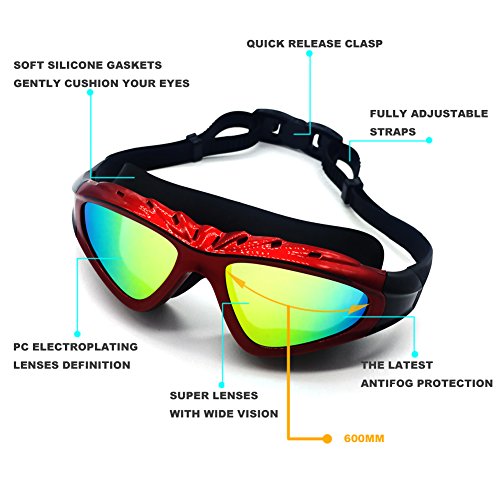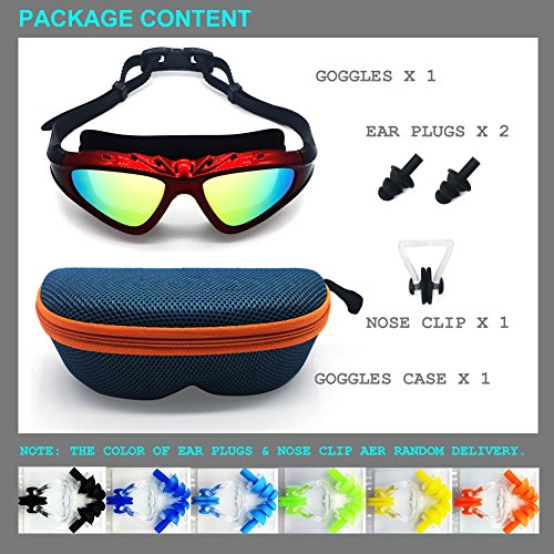 Studio : MIBOW Publisher : MIBOW Binding : Misc. Product Description Description MIBOW Swim Goggles, The Best Partner in Water with Friends Families Features 1. Soft Safe Material: Strap and Gaskets are all made of safe comfortable silicone in order to give you a comfy wearing experience. Double-Layer soft gaskets seal your eye sockets snugly, to prevent leakage while minimize the frontal resistance in water. 2. Wide Angle Design: MIBOW Swim Goggles are design with wider lenses so that you could have undistorted peripheral vision 3. Anti-fog Coating: Inner surface of the lenses are coated with anti-fog treatment to have prolonged clear vision. 4. Lenses Material: Upscale PC Electroplating lenses. 5.Mirrored coating lenses with UVA/UVB protection offer clear view and lessen damages to your eyes , which meet your requirements for outdoor swimming. Matters Needing Attention for Swimming 1. You are suggested to do some warm-up before swimming to help strengthen your muscles, which will prevent you from strain. 2. DO NOT swim under the sun for a long time, otherwise, you might be suburnt. 3. After swimming, please rinse your eyes, ears, nose, mouth and your body with fresh water in time, then relax yourself. * Maintenance Tips for Goggles 1. Before use, please soak the inside and outside lens totally with fresh water. 2. Please never touch the inner surfaces of the lenses by hand or other hard materials, otherwise the antifogging coating will be easily fade away in a short period of time. 3.After use, please clean the goggles with clear water and keep it in a shady and cool place letting them naturally air-dried. Package Included: 1 x Swim Goggles 1 x Nose Clips 1 x Ear Plugs 1 x glasses case