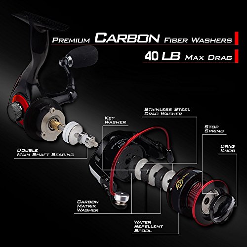 -. Feature : Inspired New Design-----The Mpeter Sentinel Fishing Real features a CNC aluminum Spool,high modulus corrosion-free graphite body,and computer balanced rotor,which make it lighter and stronger for spectacular casting, less fatigue, and durability. / Excellent Smooth Rate----- 10+1 corrosion resistant bearings, increased strength precision mesh brass gears, and stainless-steel shaft adds to this fishing reels super slick retrieve and toughness when battling big fish. / Powerful------ Use the Mpeter Sentinel spinning reel with up to 40 lbs of triple disc carbon fiber max drag capability to conquer monster fish! New designed CNC aluminum spool with better line-lay and more line capacity features lube retention grooves for longer life and smooth, fluid yet powerful operation. A true bulldog of a fishing reel / Various Sizes----- Available For Freshwater Bass Trout Fishing, Saltwater Surf Fishing Or Inshore Fishing. Perfect Thanksgiving Birthday Christmas Gift For Fisherman . / Exquisite Appearance-----Inspired By The Transformers, The Perfect Combination Of Aesthetics And Mechanics.Mpeter Sentinel is produced in our most popular black and red color combo. Its bold, brilliant aluminum spool,with a power launch lip for farther casting, holds more line than competitor's models that sell for much more.