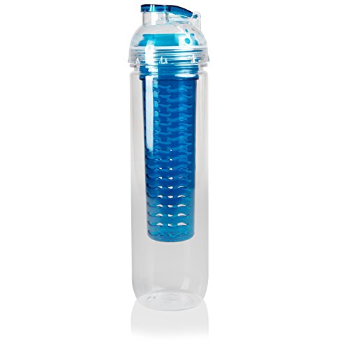 Helps you stay hydrated. Drinking water improves your health and being hydrated helps to flush toxins out of your body, and help you to have a better skin. With your light blue fruit infuser water bottle you will be able to create natural healthy drinks.