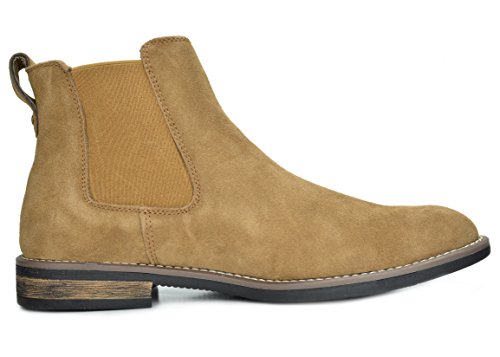 Product Description Pull off an edgy and comfortable look with these casual chelsea boots! Featuring Suede Leather upper, Slip on design, classic round toe design, elastic side panel for easy on and off. Finished with smooth fabric Lining, cushioned footbed for comfort, and non-skid outsole. 0