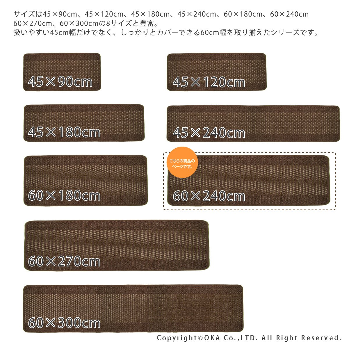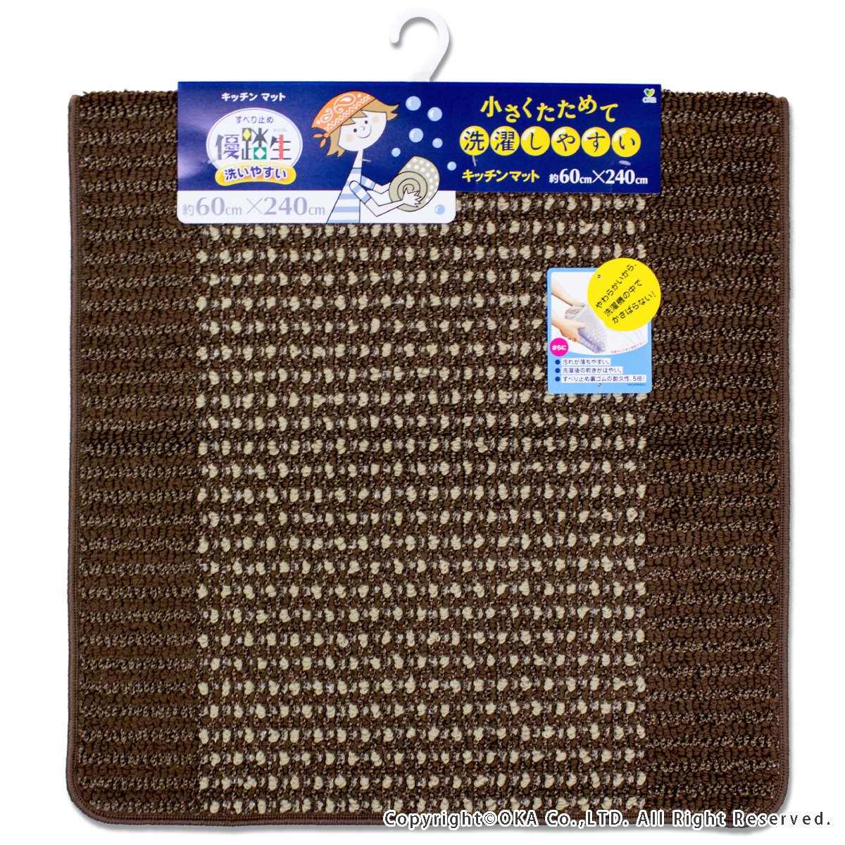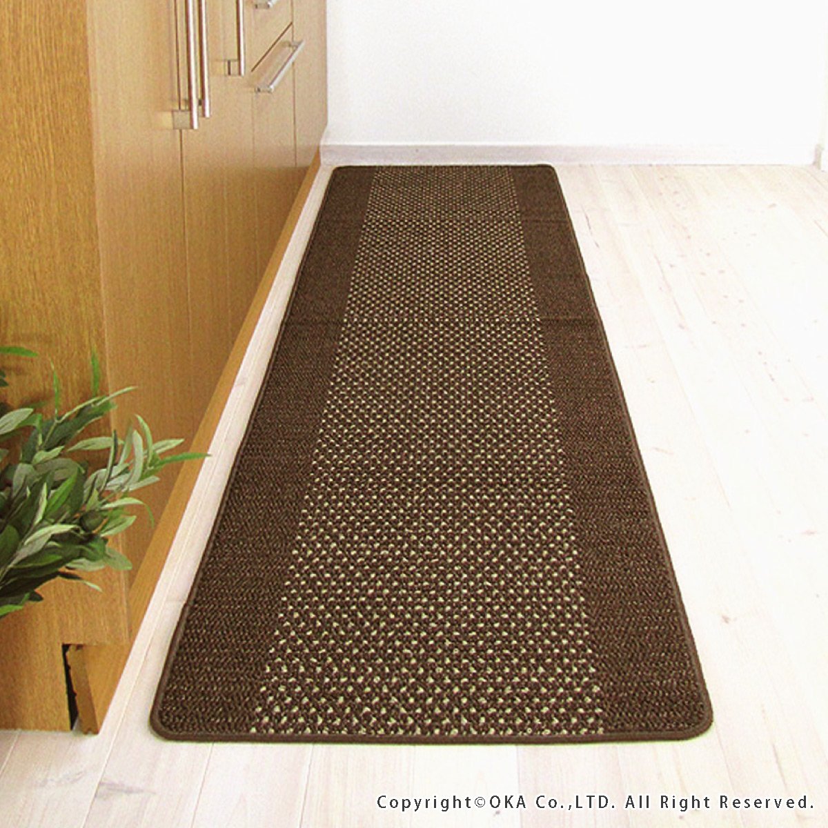 Oka kitchen mat Yu 踏生 easy to wash made in Japan Brown about 60 × 240cm