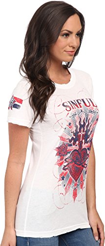 Raw-edge detailing at neck, sleeves, and hem for added vintage flare. Round neckline. Short sleeve design. Straight hemline. 100% cotton. Machine wash cold, tumble dry low. Made in the U.S.A. and Imported.