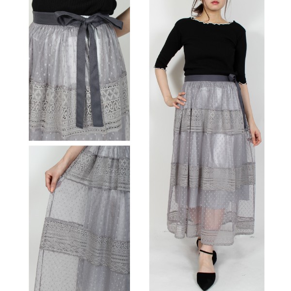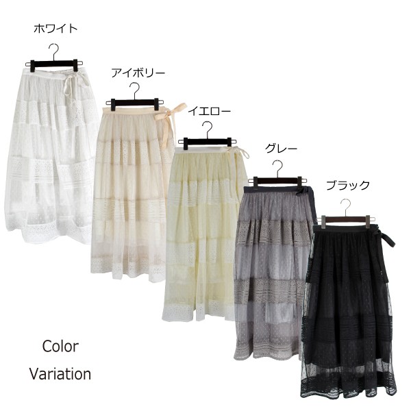 | 素材 | 表地レース ポリエステル100% チュール ポリエステル100% 別布 ポリエステル100% 外側 ポリエステル100% 内側 ポリエステル100% |