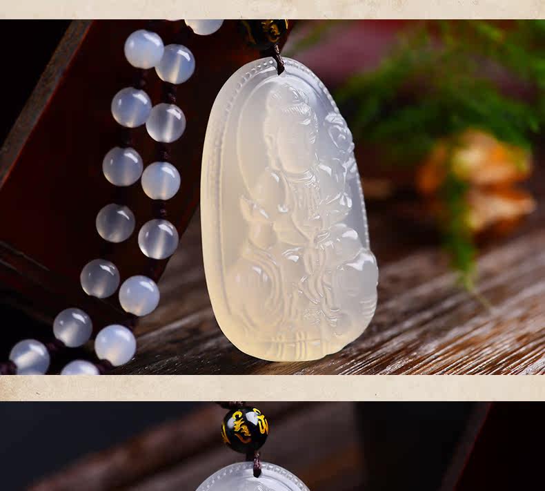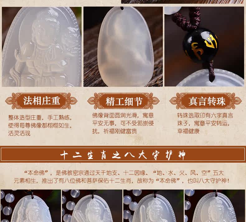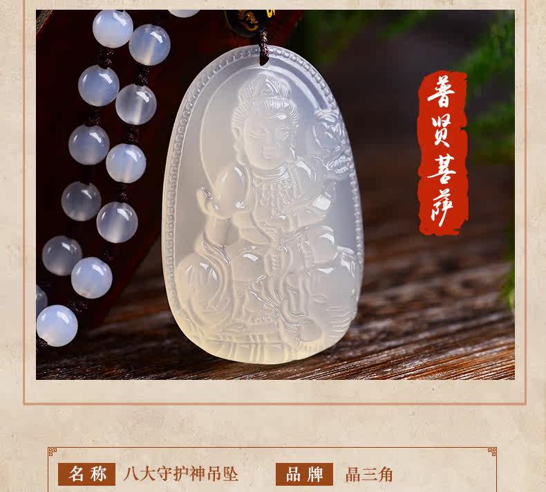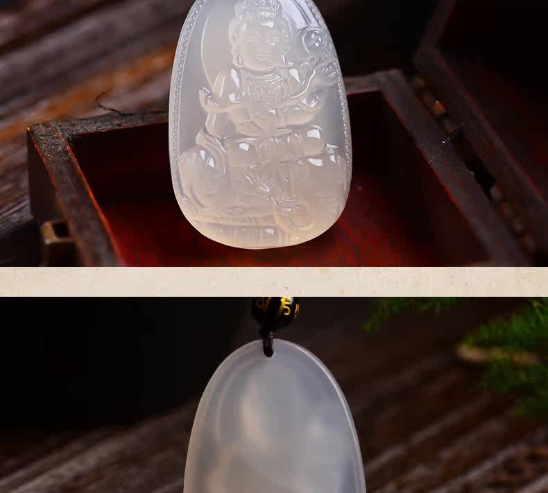 开光 天然白玉髓普贤菩萨本命佛吊坠 生肖龙蛇守护神男女项链挂件
