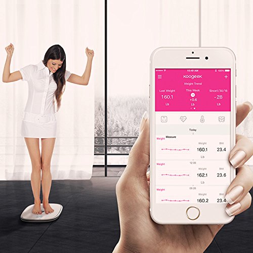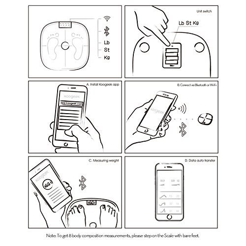 -. Title : Koogeek Bluetooth Wifi Smart Scale,8 Body Statistics Measurement, 16 Users Recognition, Baby Weighing on 2.4G Network