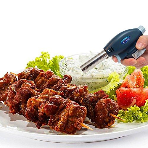 Professional Quality Culinary Torch - Used in the finest kitchen. Ideal for caramelizing sugar atop creme brulee, glazing a baked ham, searing a steak, roasting bell peppers, melting cheese and toasting bread crumbs.